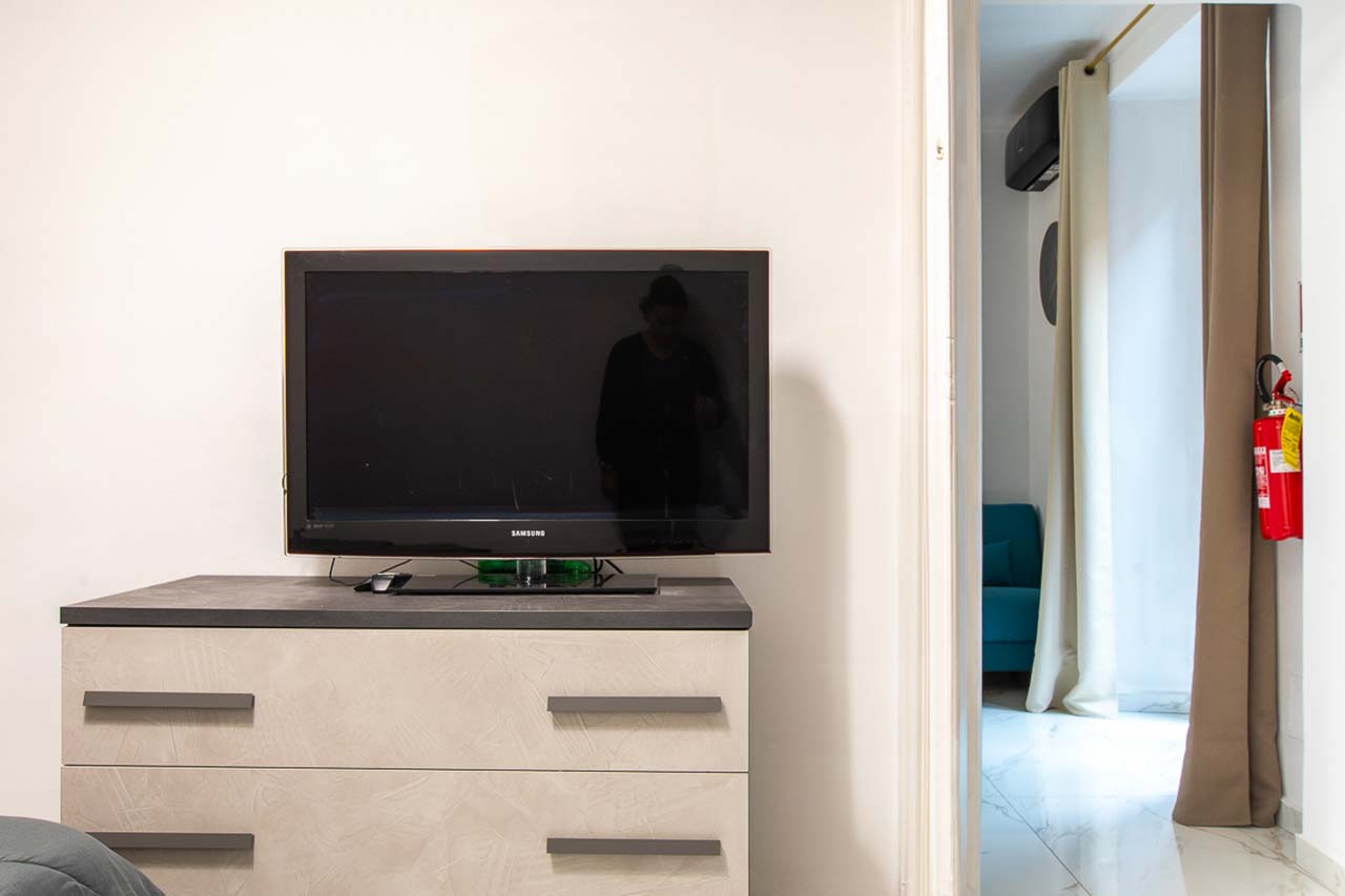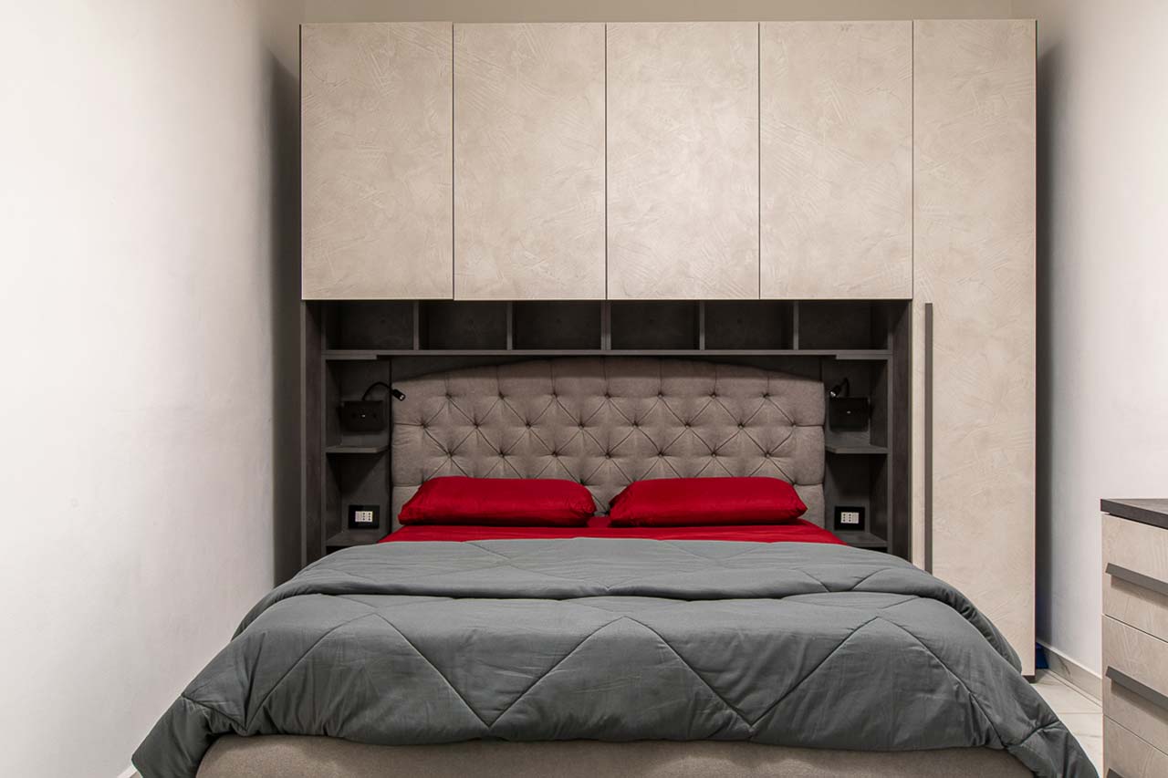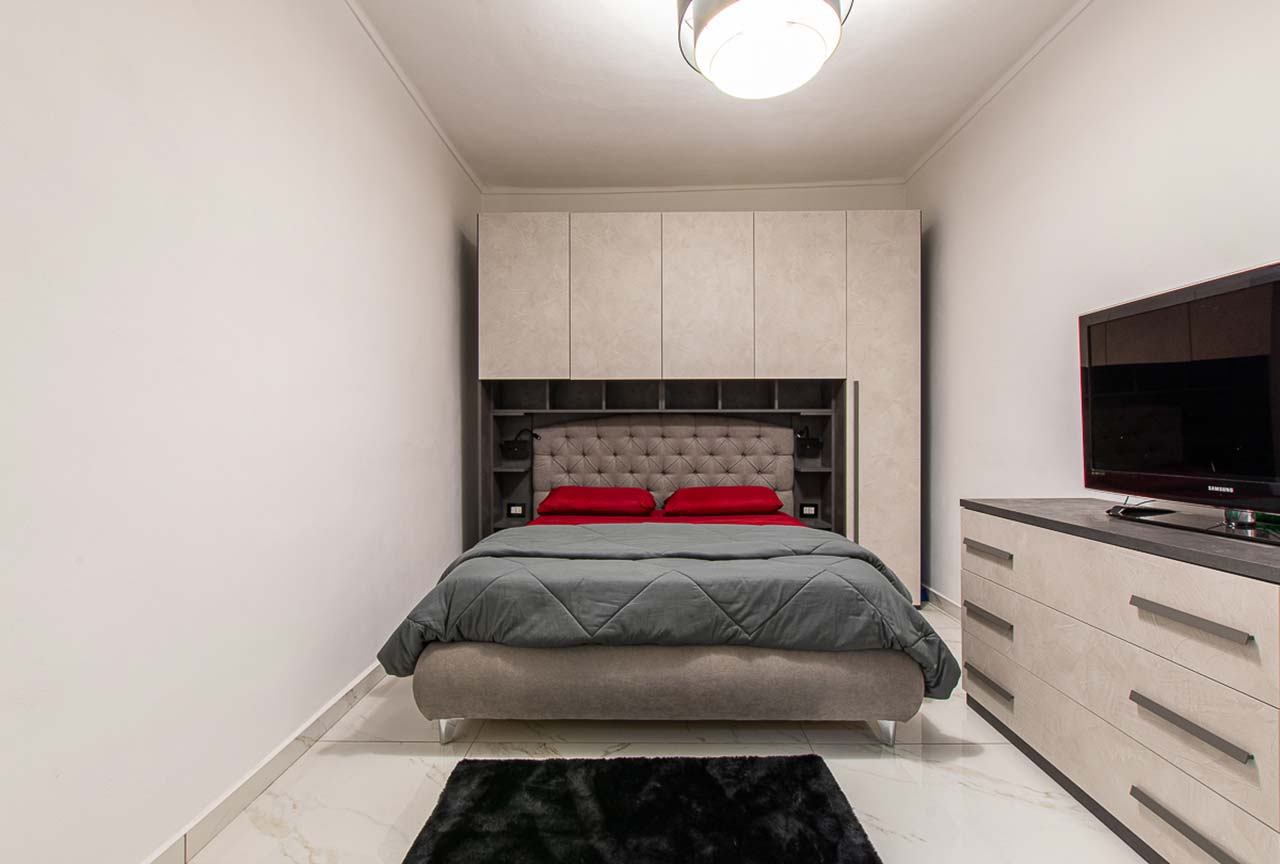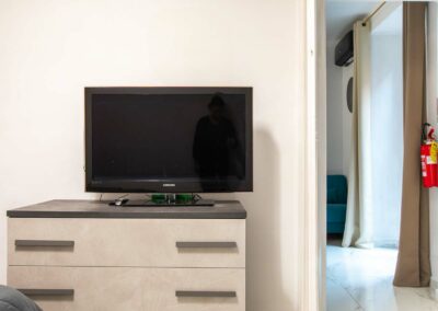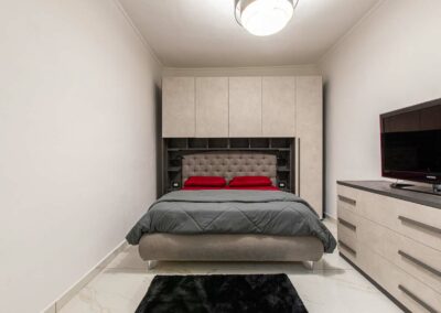 La camera da letto, elegante e silenziosa, dispone di un letto matrimoniale comodo (160×190), biancheria di qualità, coperte e cuscini extra, armadio e TV smart, con aria condizionata e riscaldamento autonomo per garantire sempre la temperatura ideale.