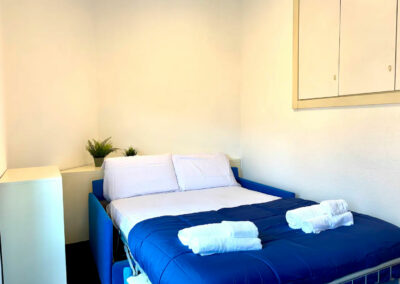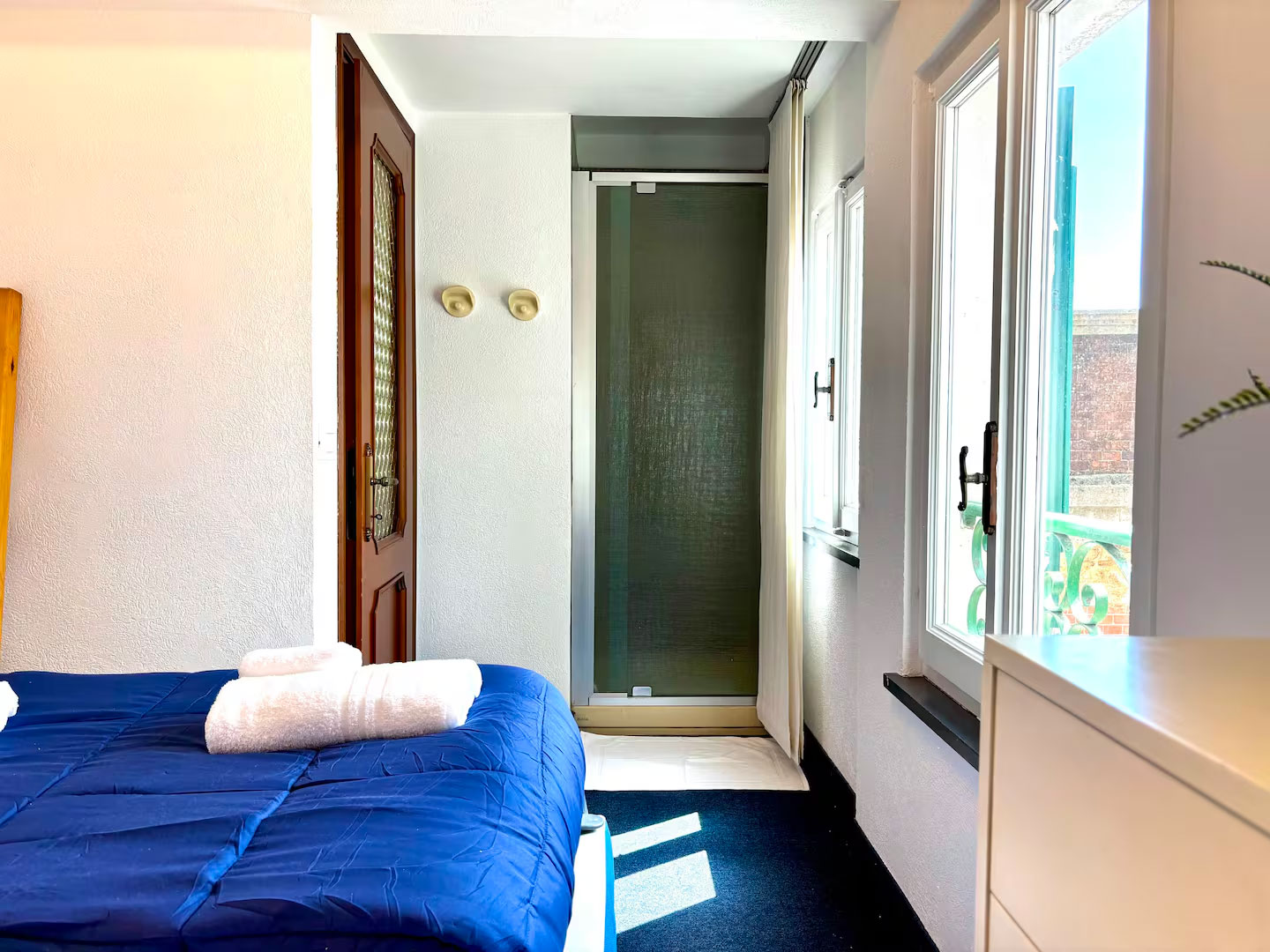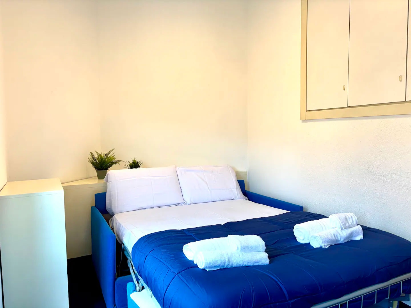 La camera da letto matrimoniale garantisce notti di riposo grazie al letto 160×190, alla biancheria inclusa e agli accessori extra come cuscini e coperte. Il bagno, moderno e funzionale, è dotato di doccia, asciugacapelli, prodotti per la cura personale e riscaldamento. Tutti gli ambienti sono climatizzati per garantire comfort in ogni stagione.