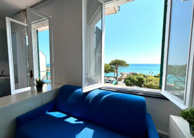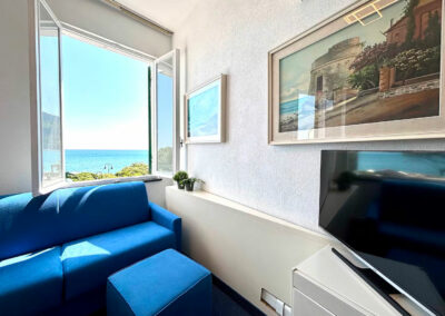L’appartamento è fronte mare e gode della luce naturale dall’alba al tramonto, rendendolo ideale sia per vacanze romantiche che per soggiorni in famiglia.
