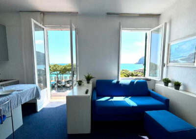 La posizione strategica permette di trovarsi a pochi passi dalla spiaggia e dai pittoreschi vicoli del borgo, offrendo il giusto equilibrio tra la vivacità del centro storico e la serenità della Riviera.